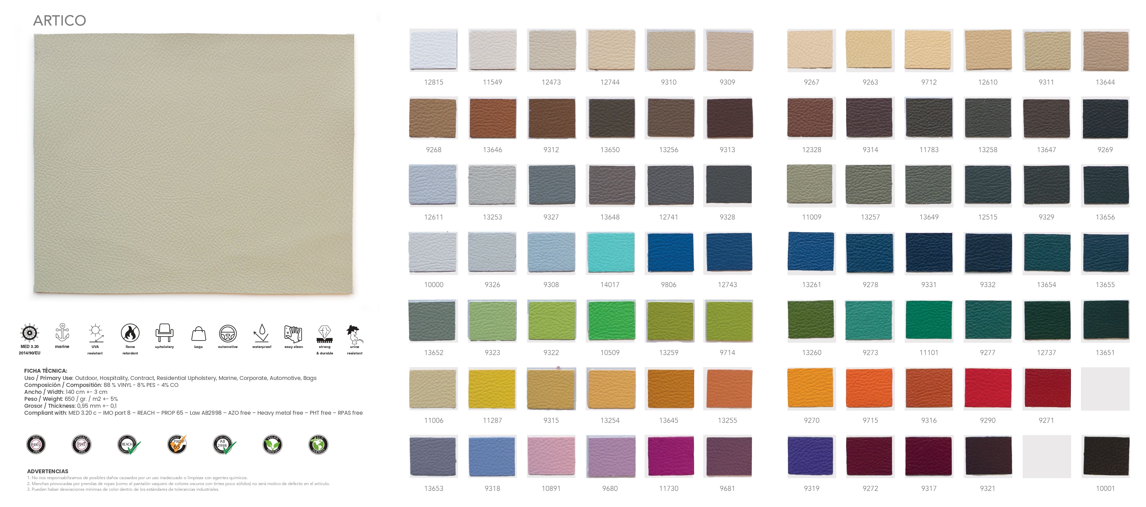 Una combinación de 82 colores en polipiel perfecta tanto para interior como exterior.